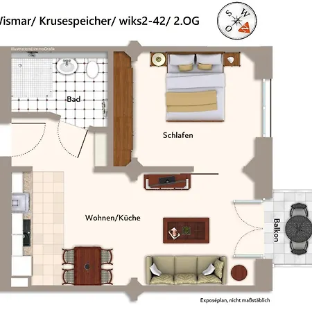 Disfruta de tus vacaciones en Wißmar en el Krusespeicher Krusespeicher 2-42. Ideal para quienes buscan una experiencia auténtica, está situado a alrededor de 15 minutos andando de Fürstenhof y a aproximadamente 25 minutos andando del Teatro de la Ciudad Hanseática de Wismar. Los huéspedes pueden disfrutar del Wi-Fi.